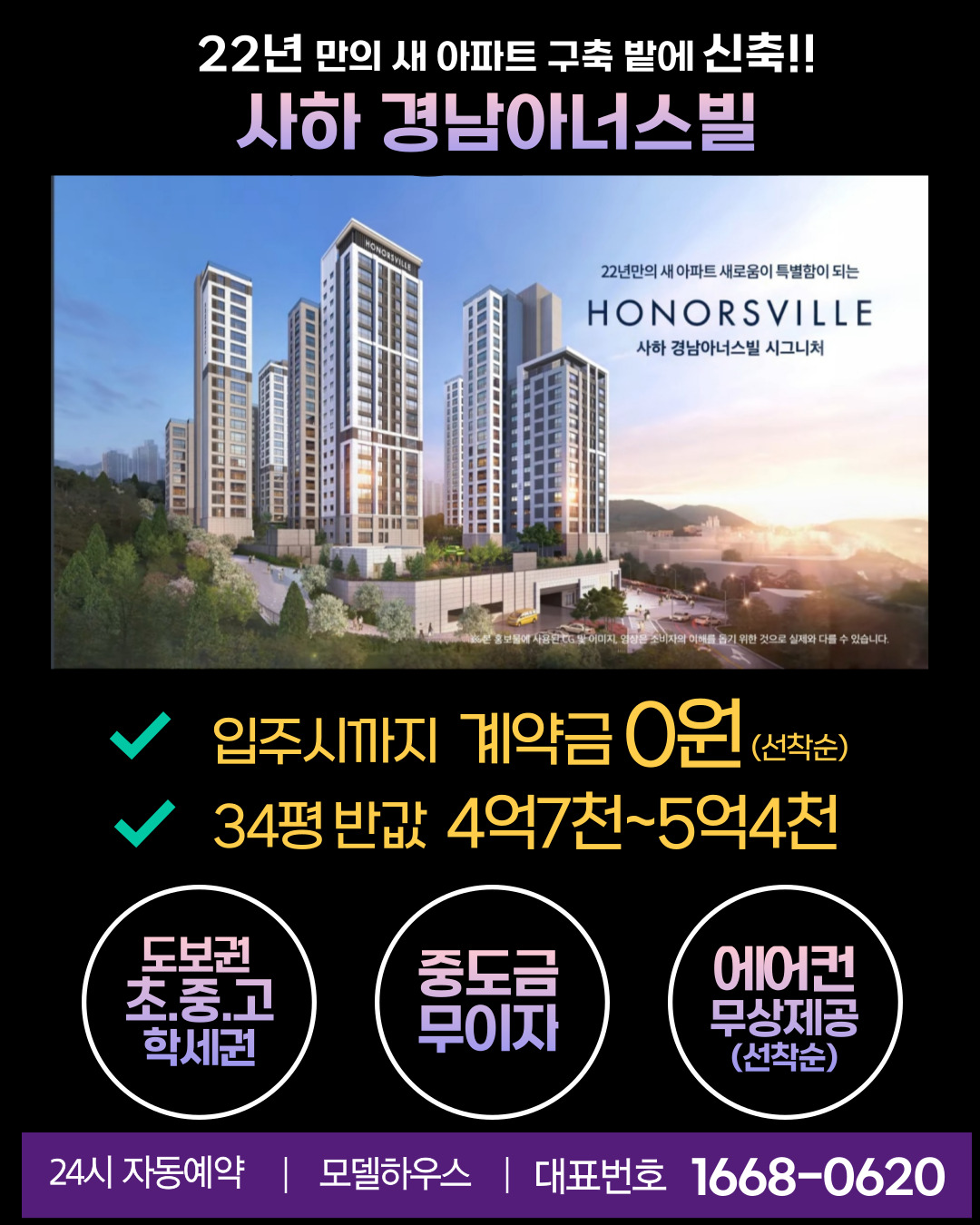 '사하 경남아너스빌'은 서비스 제공을 위해 필요한 최소한의 범위 내에서 개인정보를 수집하고 있습니다.